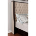 If you want to be hugged by luxury this bed is just for you. A wingback headboard juts forward to give you small easements of padding. A deep button tufting give the head and foot boards the distinct look of overstuffed padding. The two-tone color palette signals sophistication, offering your bedroom a wondrous sleeping platform.