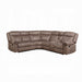 - The Dollum collection is ideal for those who seek casual comfort in their home. At a glance, the collection shows off its comfortable design with its plush pillow arms, plush backrests and headrests, and reclining seating. Contrast stitching provides a touch of detailed texture to create visual depth against the two-tone chocolate velvet. The sectional sofa features a console with two cupholders and storage with USB and AC power ports, perfect for your casual home.