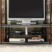 Silver Creek Brown/Silver 2 Pc. Pier Shelves (1 Pair), 20 1/2"W X 15 1/8"D X 65"H, 79lbs. Sleek and elegant, these pier shelfs add a modern touch to any living room. Pier shelfs offer open shelving for easy access, black glass shelving for display and are finished in a brown and silver. Features: Contemporary Style Black Tempered Glass Top Brown & Silver Finish Metal Construction