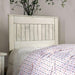 This luscious solid wood headboard is painted in a distressed white finish. The wooden planks along the headboard invite a rustic aura into your bedroom.