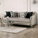 ELICIA Sofa, 93"L X 39"W X 39"H, 159lbs. It's a made-in-the-U.S.A. sofa for the space age! Unique, reflective champagne fabric adorns the wood construction, gleaming with pride as the centerpiece of your living room! Available separately as a love seat or sofa, or be really daring and add them both to your room for a dynamic of pure flash!